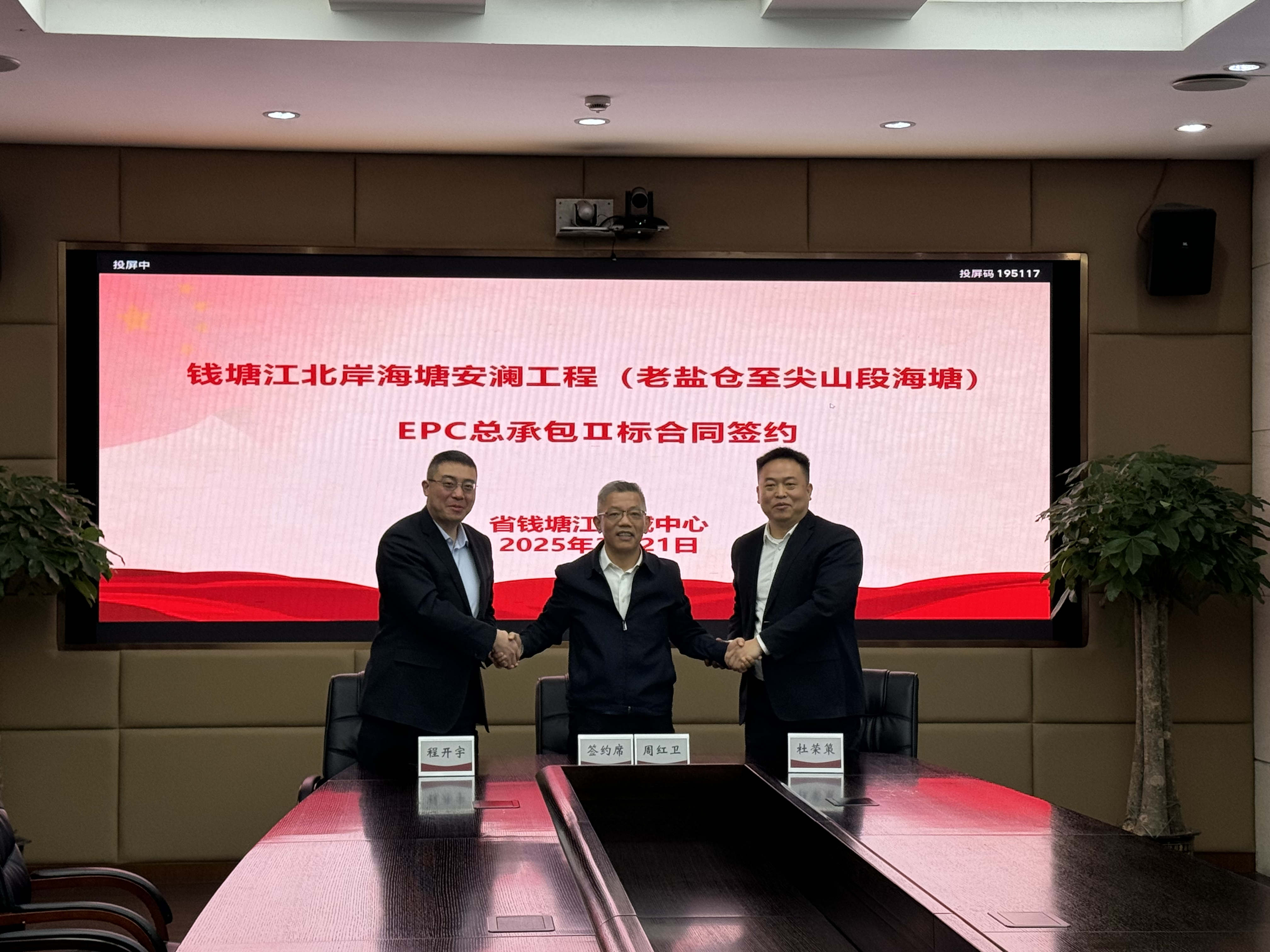 3月21日,錢塘江北岸海塘安瀾工程(老鹽倉至尖山段海塘)EPC工程總承包II標(biāo)項(xiàng)目合同在錢塘江流域中心成功簽署。省錢塘江流域中心黨組書記周紅、海塘工程部和海寧管理站等相關(guān)部門領(lǐng)導(dǎo)出席簽約儀式,集團(tuán)公司總經(jīng)理杜榮策參加儀式。